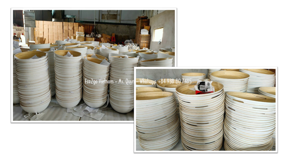 ชุดชามและจานไม้ไผ่ปั่นเป็นมิตรต่อสิ่งแวดล้อมชุด2025ออกแบบได้ตามต้องการพร้อมโลโก้แกะสลักเลเซอร์ผลิตในเวียดนาม