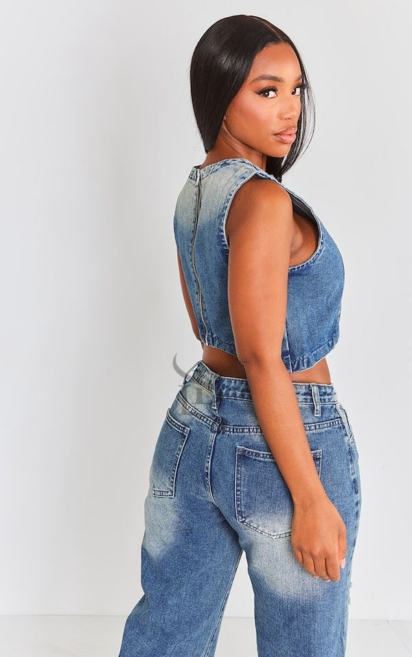 ชื่อผลิตภัณฑ์:เสื้อเกาะอกผ้ายีนส์ผู้หญิง