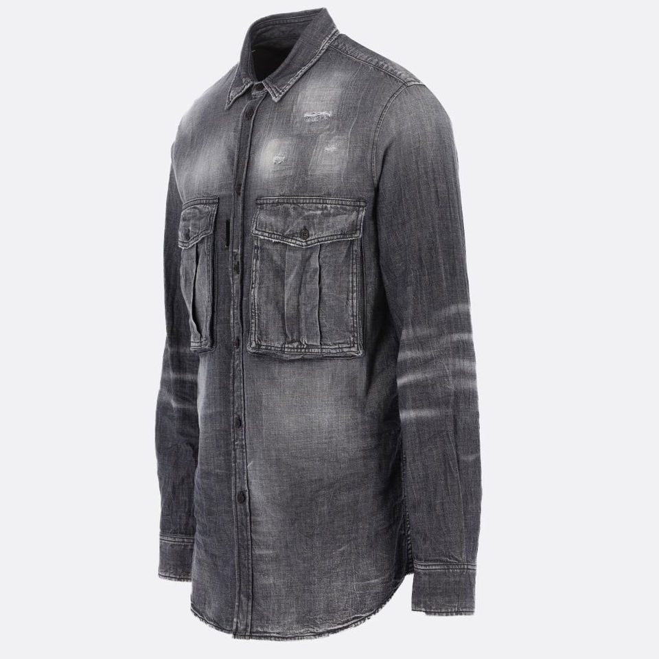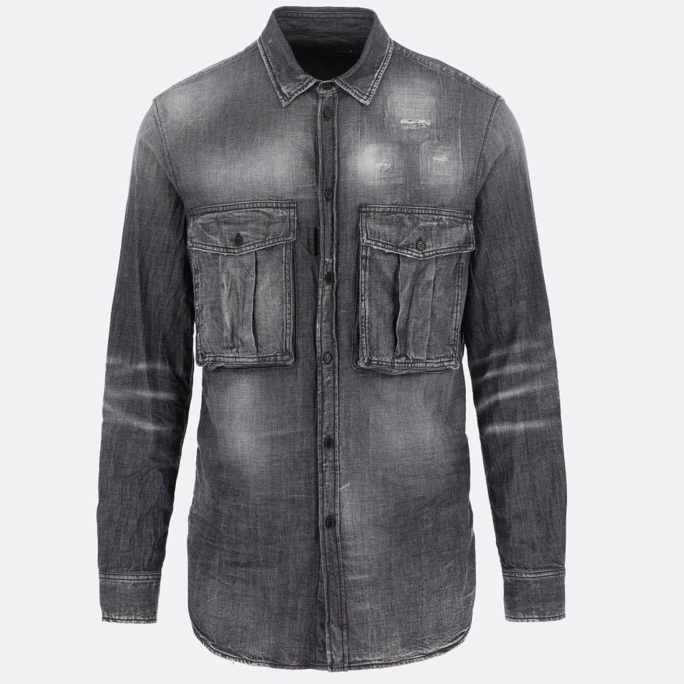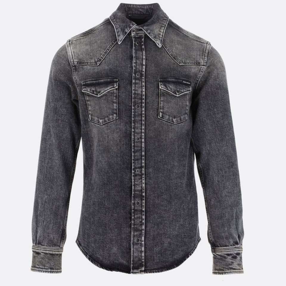 เสื้อยีนส์ผ้ายีนส์ซักสีดำแบบเป็นกรดของผู้ชายแฟชั่นสุด2025