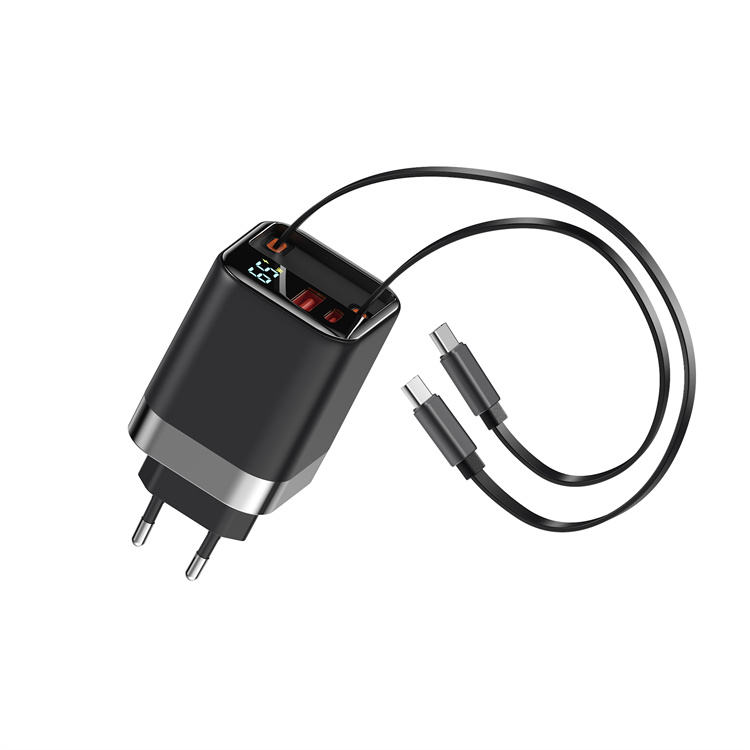 ที่ชาร์จเร็วแบบพกพา GaN 4 พอร์ต 65W รุ่นปี 2025 พร้อมหน้าจอ TFT แบบพับเก็บได้ อะแดปเตอร์ Type C และ USB