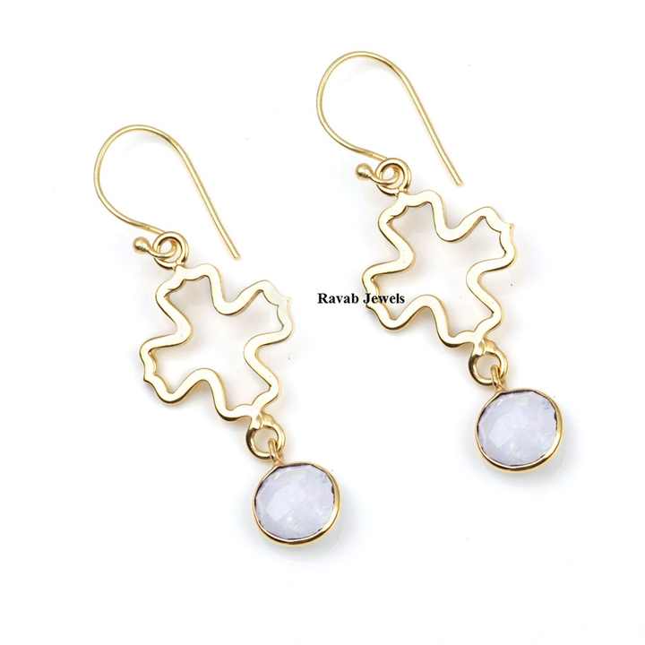 ชื่อสินค้า:ต่างหูเงินชุบทองประดับพลอยธรรมชาติ