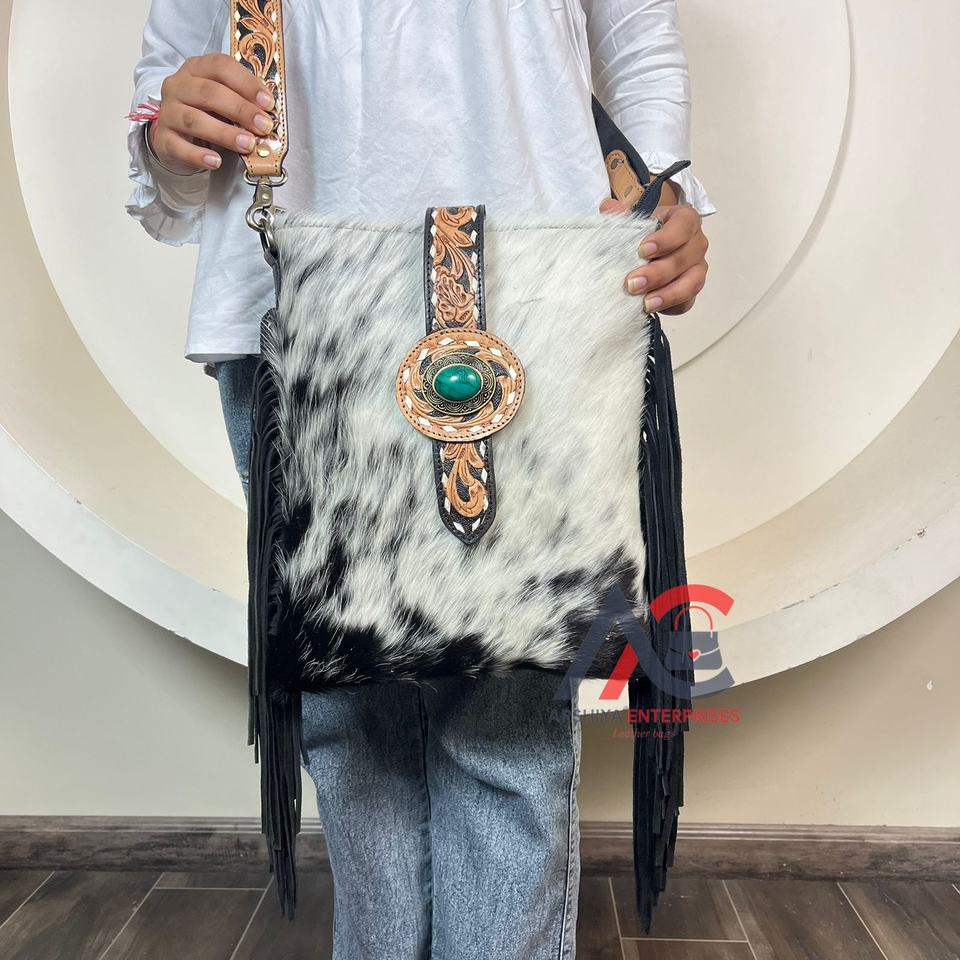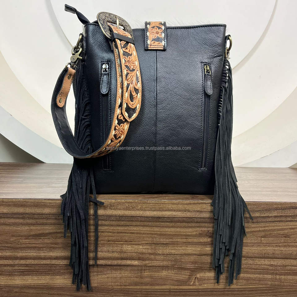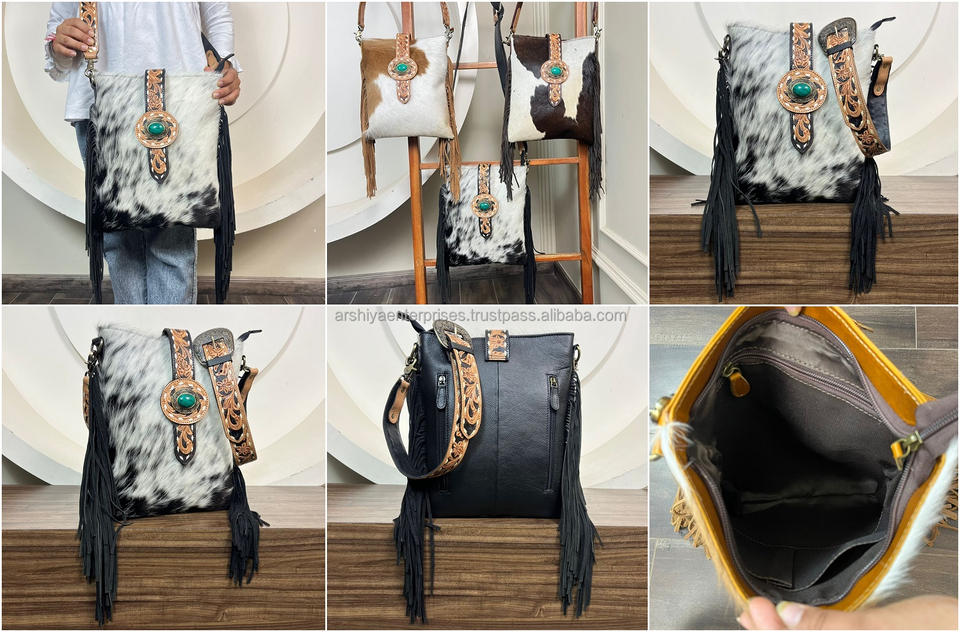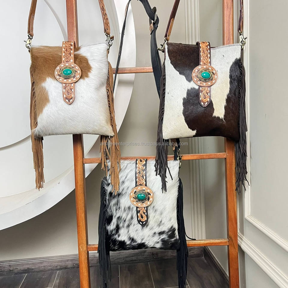 ชื่อผลิตภัณฑ์:กระเป๋าถือหนังวัวประดับพู่มือ