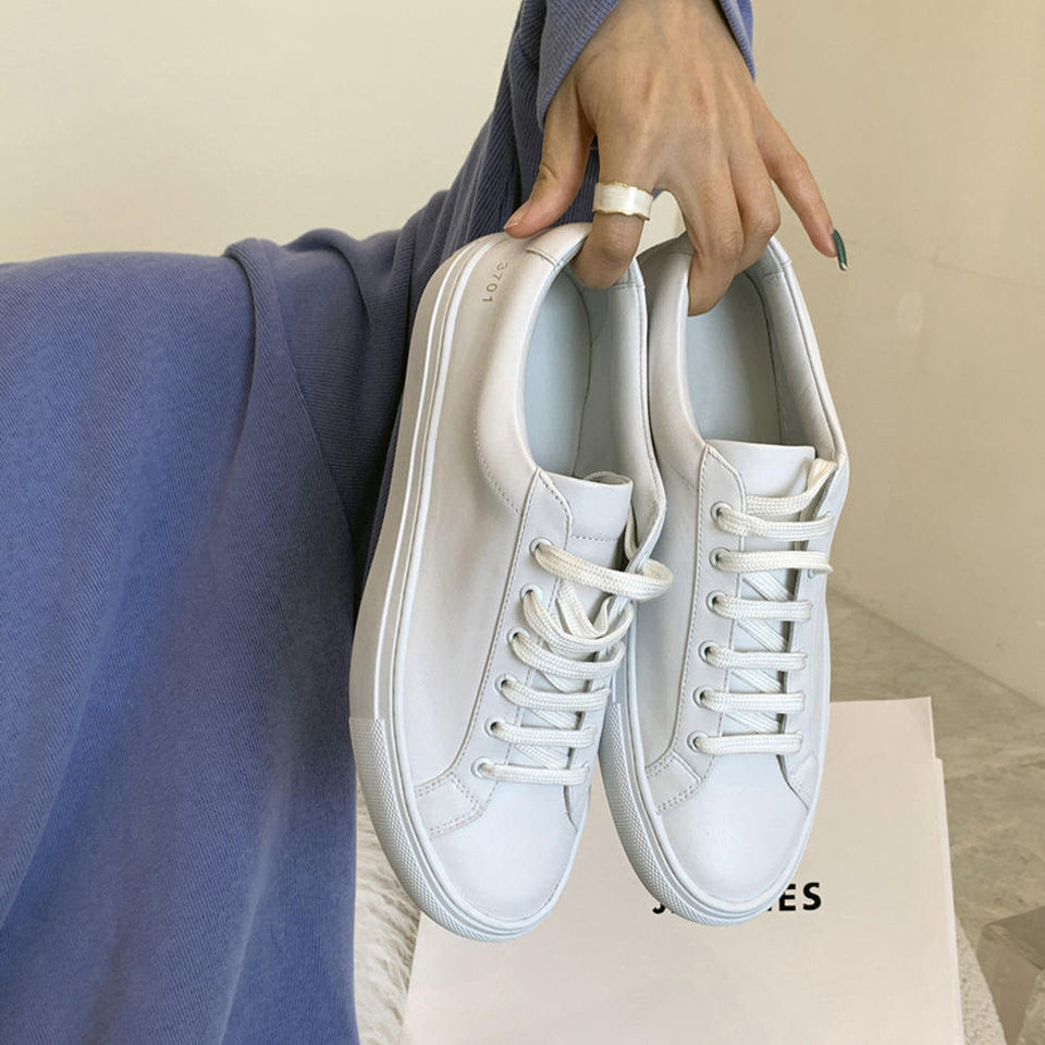 รองเท้าผ้าใบหนังแท้สีขาวทรงแบน ดีไซน์ใหม่ คลาสสิก ทรงเตี้ย สไตล์สเก็ตบอร์ด ระบายอากาศได้ดี แฟชั่นมาแรงปี 2025