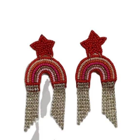ต่างหูลูกปัดหลากสีของผู้หญิงต่างหูแบบห้อยทำด้วยมือสำหรับเป็นของขวัญแฟชั่นจากอินเดียขายดี2025