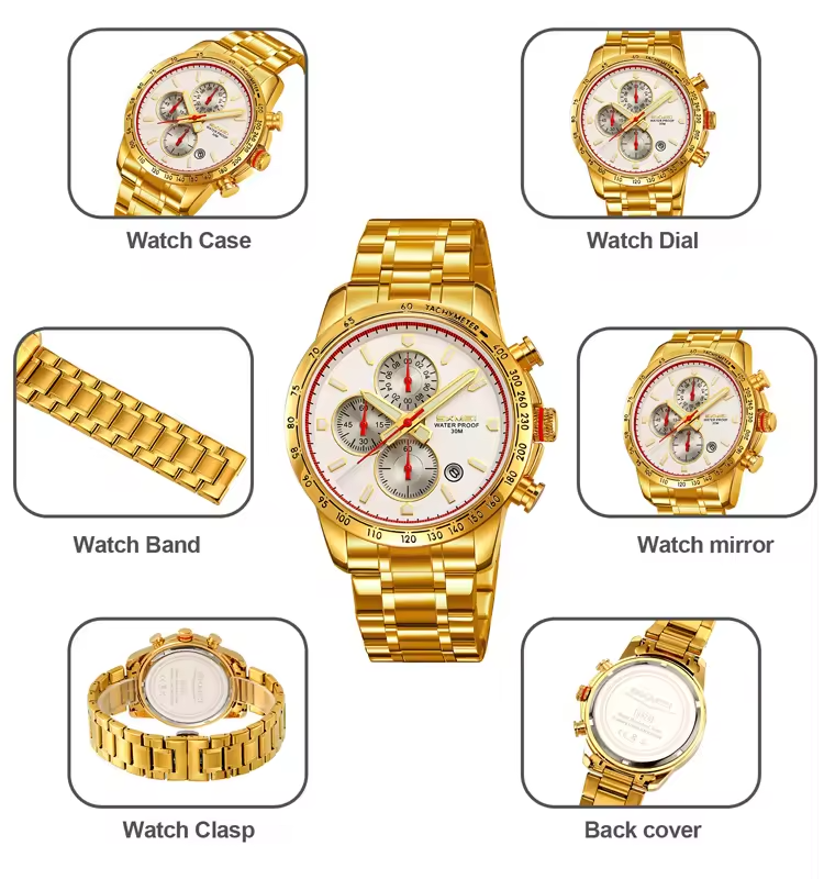 Feature:Day/Date, Multiple Time Zone, Water Resistant, Shock Resistant, Stop Watch, High Quality, Calendar, Date