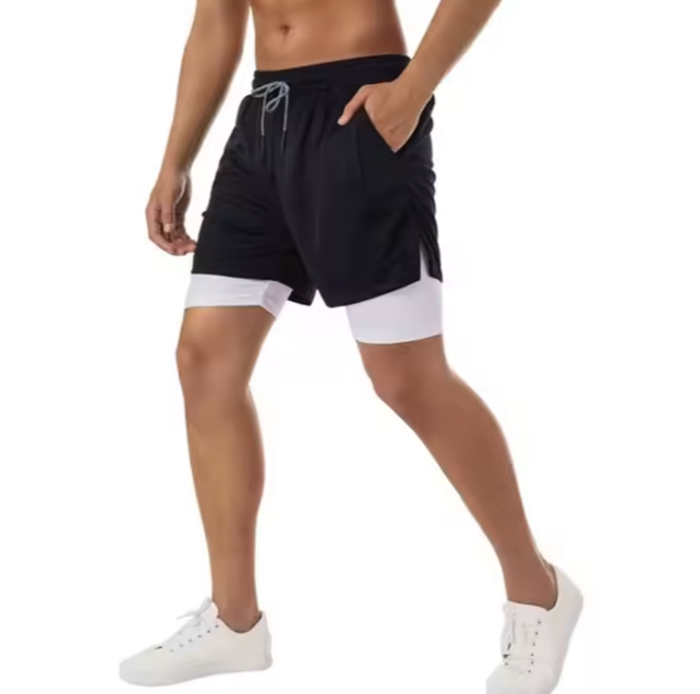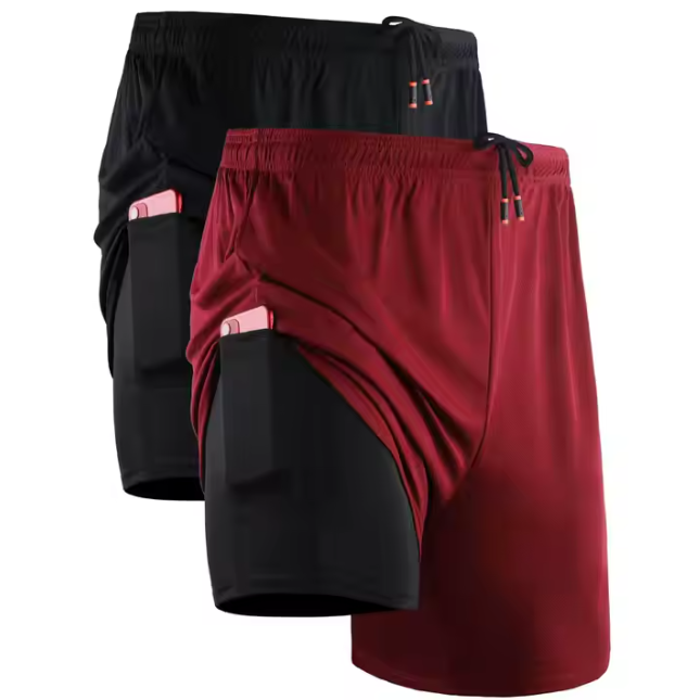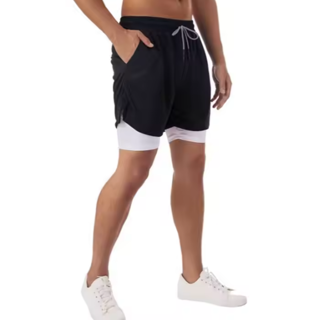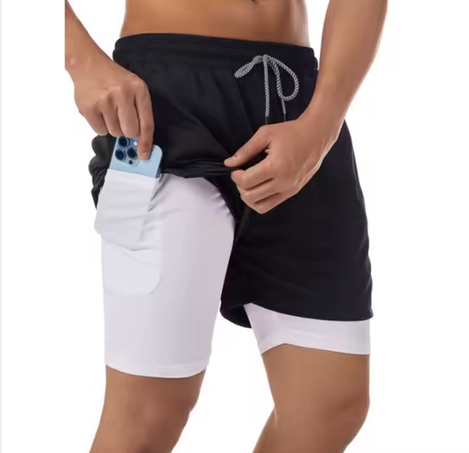 กางเกงขาสั้นวิ่งระบายอากาศแบบ2-in-1ของผู้ชายเทรนด์2025กางเกงขาสั้นลายพื้นสำหรับออกกำลังกาย