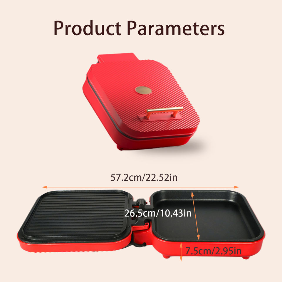 ลักษณะ:180องศาเปิดพื้นผิวเรียบไม่ติด, ควบคุมอุณหภูมิแบบปรับได้พร้อมจอแสดงผลดิจิตอล, ทำความสะอาดง่าย, บาร์บีคิวครอบครัว, ไม่ติด