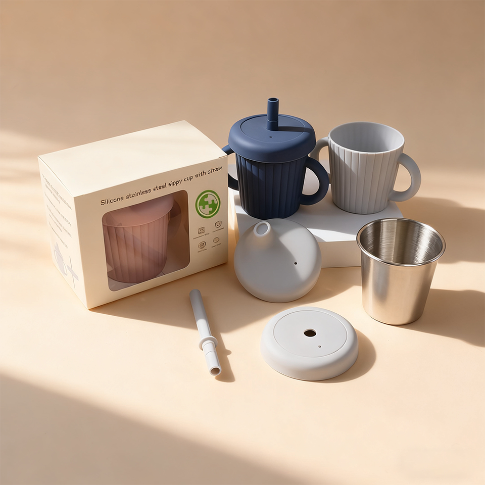 ถ้วยซิลิโคนสแตนเลสพร้อมหลอดดูด