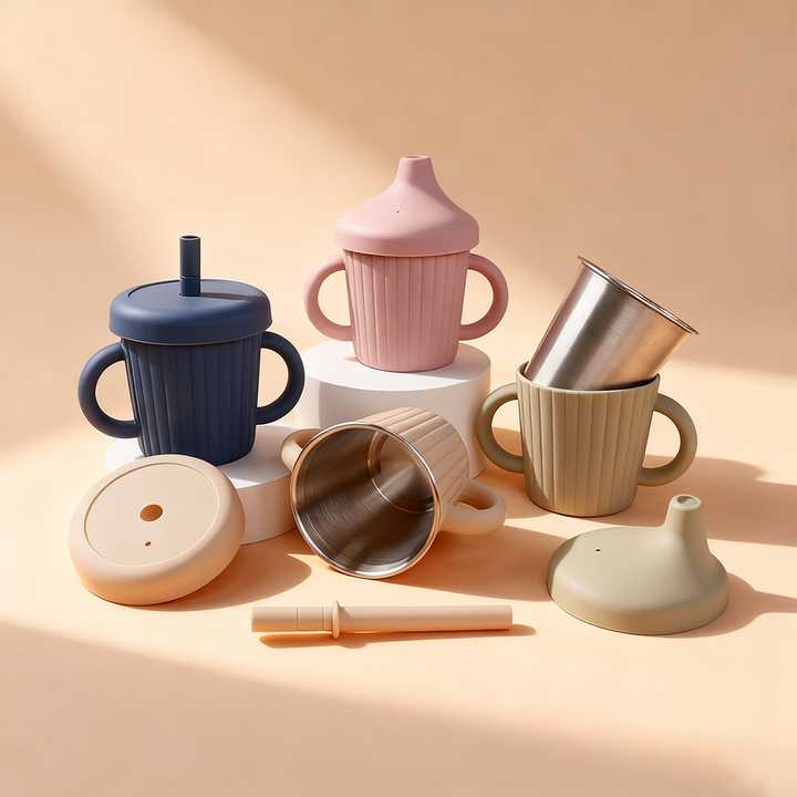 ถ้วยจิบซิลิโคนแพลตตินัมของเด็กทนทานต่อไมโครเวฟกันน้ำทนทานดีไซน์ใหม่สำหรับ2025