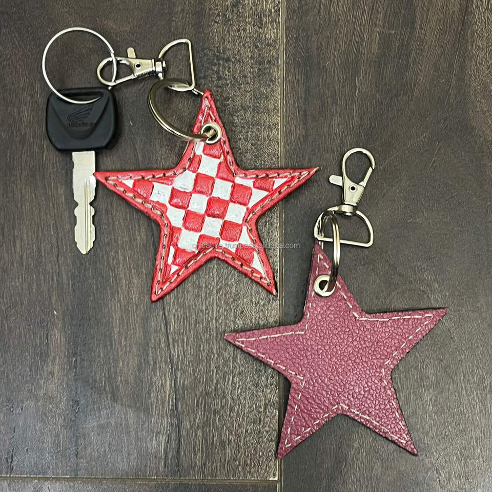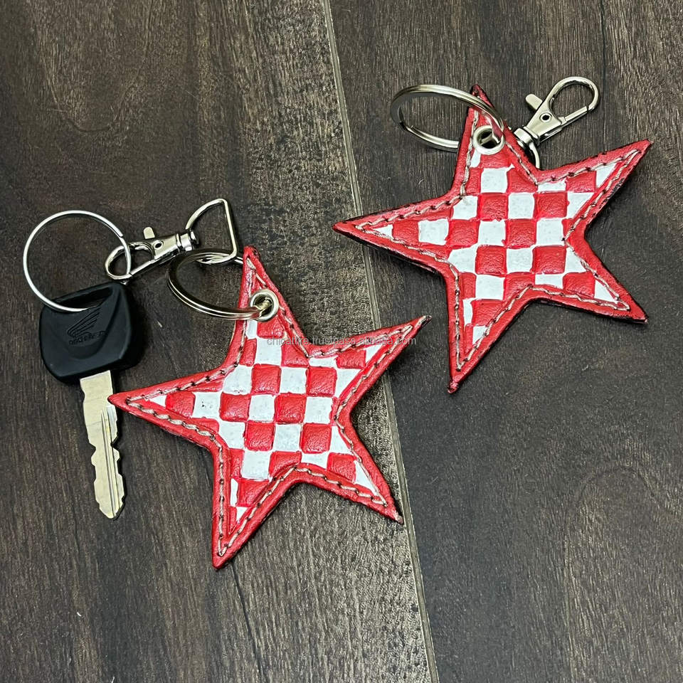 พวงกุญแจหนังลายตารางทำมือ