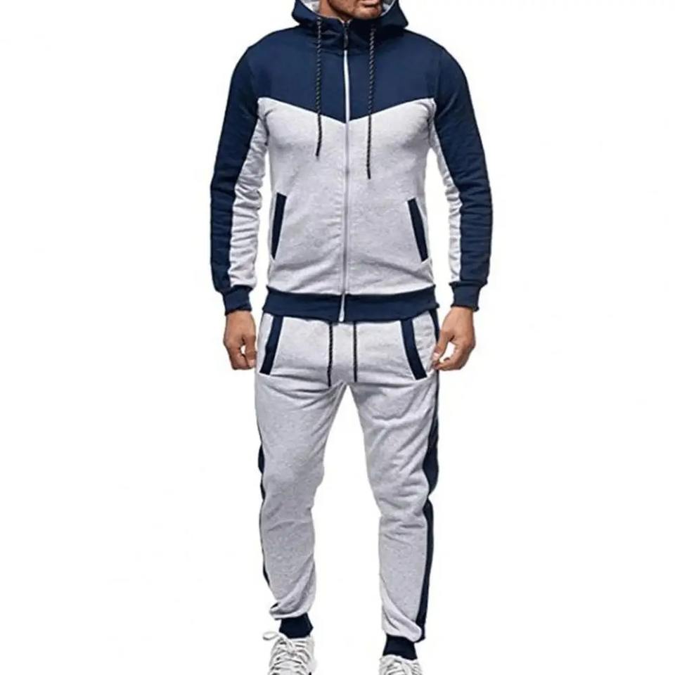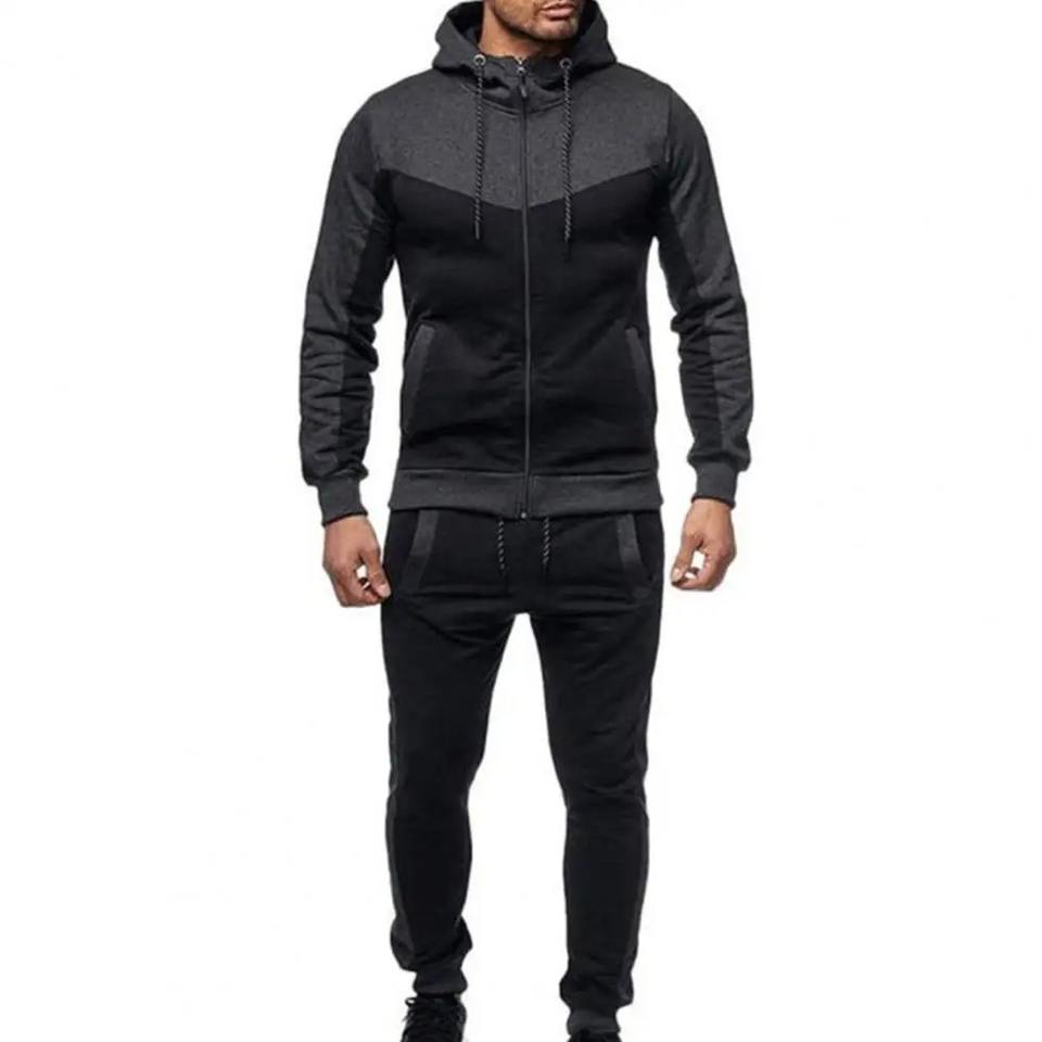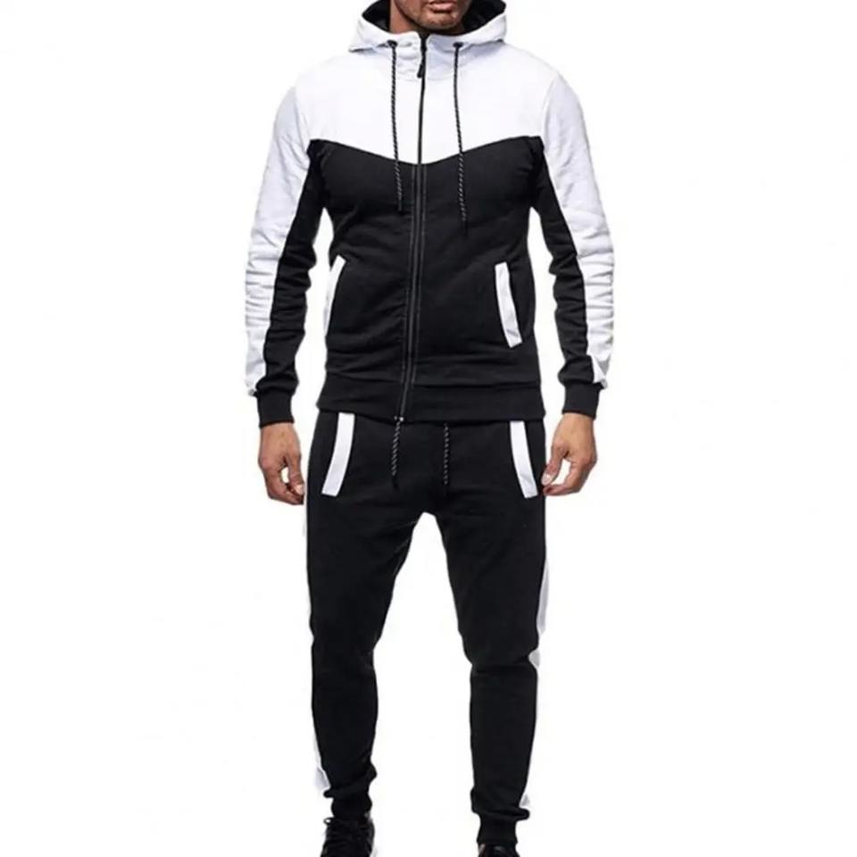 ชุดวอร์ม2025ทันสมัยสำหรับผู้ชาย2ชิ้น/เซ็ต, ชุดวอร์มระบายอากาศมีฮู้ดผูกเชือกสีตัดกันสำหรับสวมใส่ในชีวิตประจำวัน