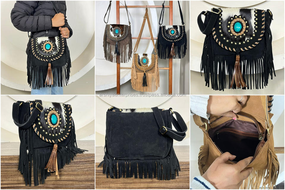 กระเป๋าสะพายไหล่หนังวัวแท้ทรงโฮโบแบบมีพู่ห้อย ดีไซน์ทันสมัยประจำปี 2026 กระเป๋าถือสไตล์โบฮีเมียนประดับพู่ห้อย กระเป๋าสะพายข้างสำหรับผู้หญิง