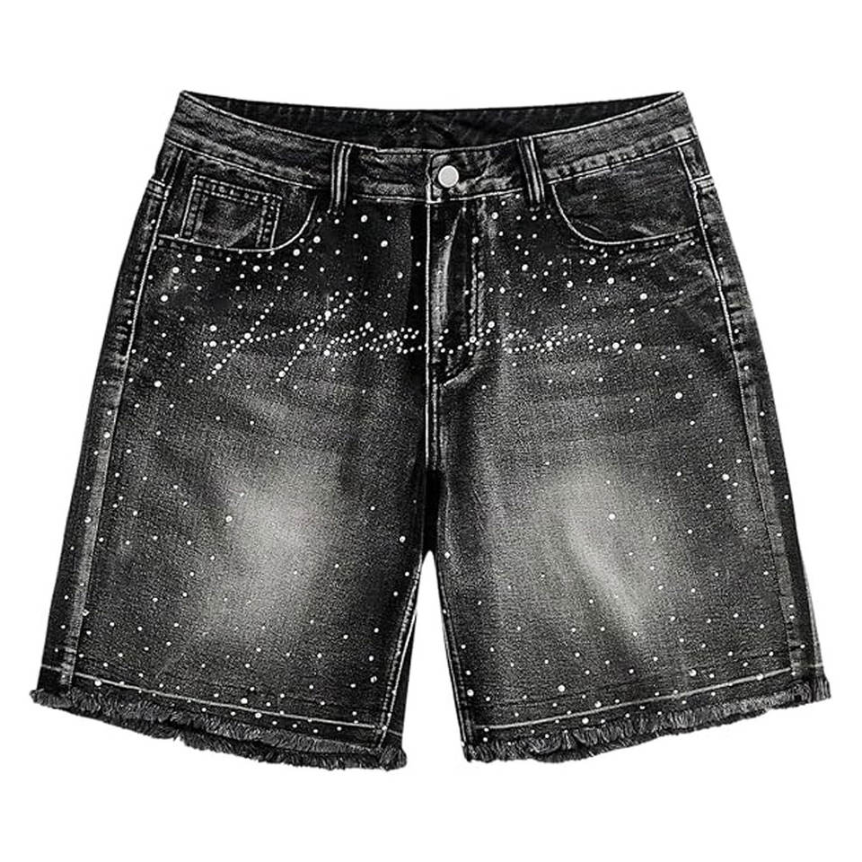 2025 Trendy Men Shorts with Rhinestones Urban Street Style OEM Men Rhinestone Casual Fashion Shorts