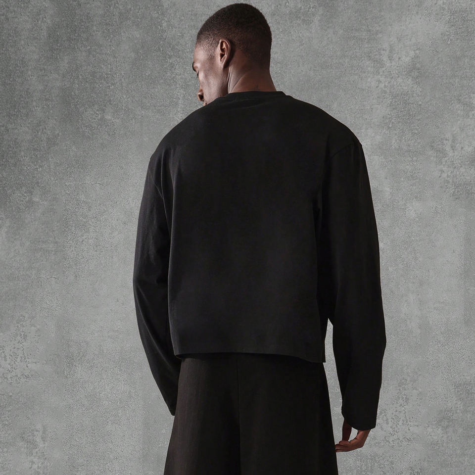 เสื้อผู้ชายแขนยาวเสื้อยืดกลางแจ้งสีดำล้วนแขนยาวอินเทรนด์2025