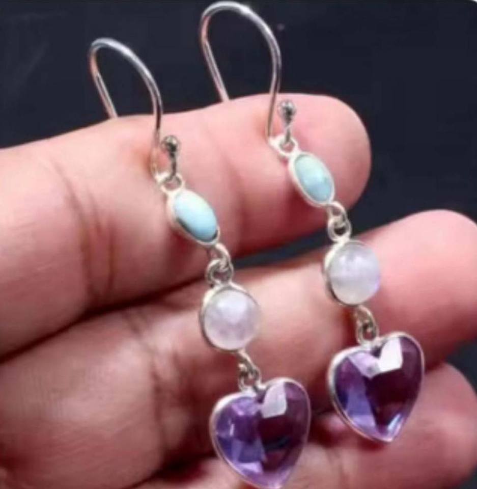 2025 Trendy Mix With Heart Shape Mixed Gem Dangle Fine Pair Earring Bezel Set 8To10MM Bezel Set 925 Sterling Silver Pair Earring