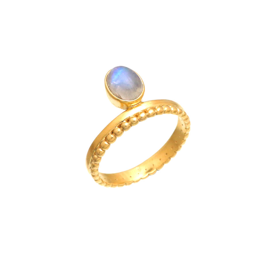 แหวนพลอยมูนสโตนสีรุ้งสุดอินเทรนด์แหวนทองคำชุบทอง18K สำหรับการหมั้น/ครบรอบแต่งงานของผู้หญิง2025