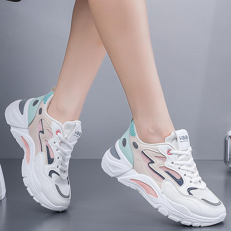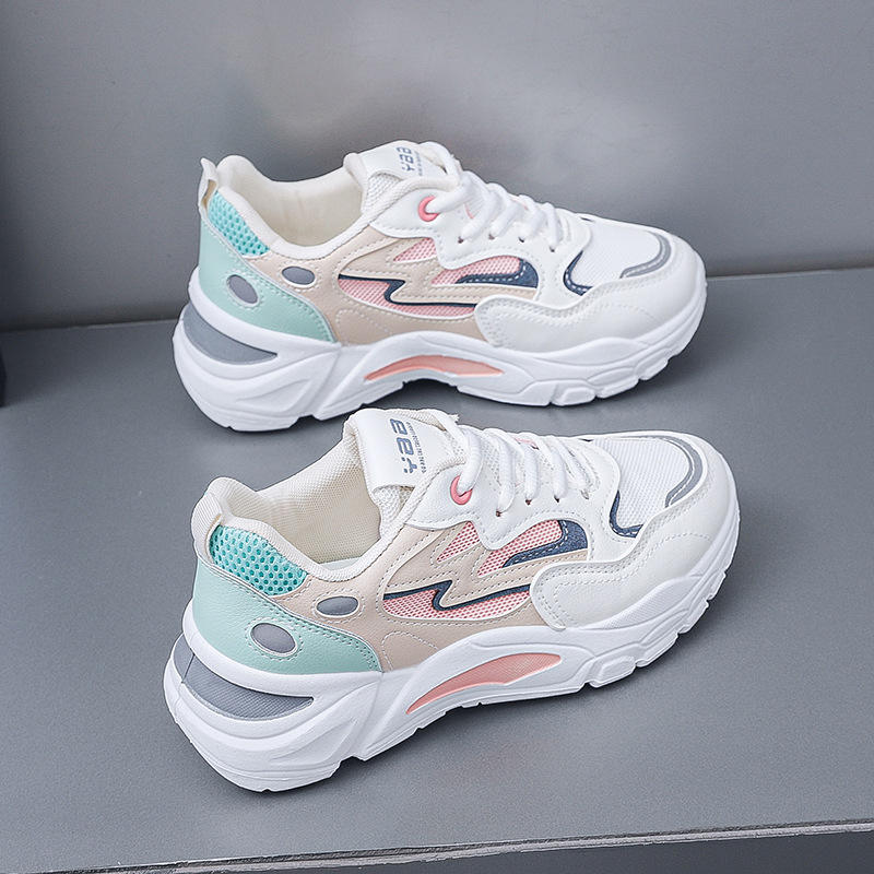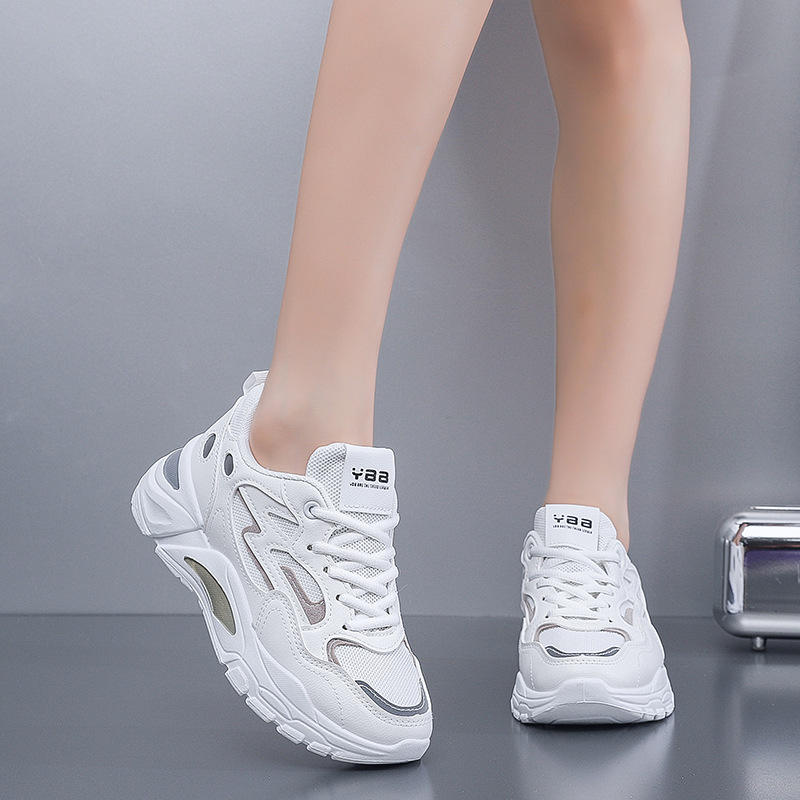 รองเท้าผ้าใบแฟชั่นทรง Dad Shoes รุ่นปี 2025 พื้นหนา กันลื่น ระบายอากาศได้ดี ใส่ได้ทั้งชายและหญิง วัสดุ PVC พื้นนุ่ม สีขาว