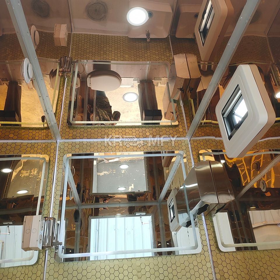 ห้องน้ำเคลื่อนที่แบบพลาสติกสำหรับใช้งานกลางแจ้ง ดีไซน์ใหม่ ปี 2025 แบบสองห้อง รถพ่วงห้องน้ำ