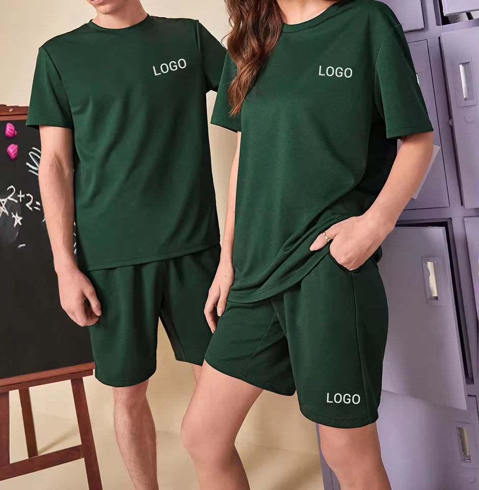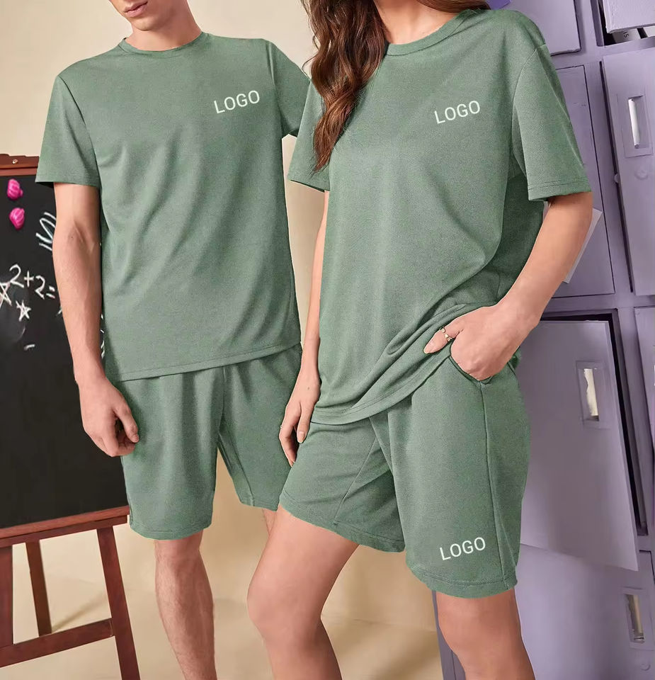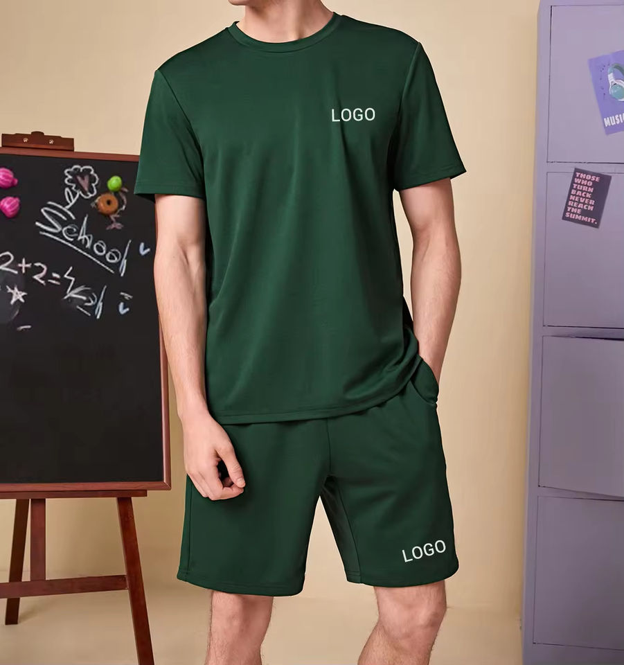 ชุดเสื้อยืดและกางเกงขาสั้นผู้ชายสไตล์เรียบง่ายไม่ซ้ำใคร ปี 2025 น้ำหนักเบา ระบายอากาศได้ดี รับผลิตตามแบบ OEM ชุดเสื้อยืดและกางเกงขาสั้นผ้าฝ้ายสำหรับฤดูร้อน
