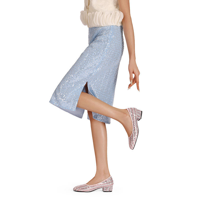 รองเท้าแมรี่เจนประดับเลื่อมอเนกประสงค์ ปี 2025 หัวกลม ส้นกลาง ผ้าลินิน รองเท้าลำลองสำหรับผู้หญิงใส่ได้ทุกวัน