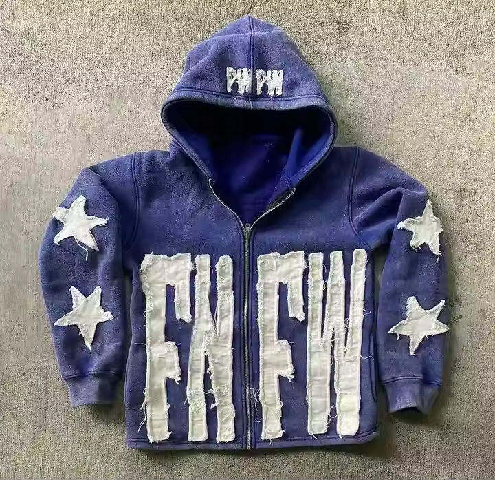 เสื้อฮู้ดผ้าเปียกมีซิปสำหรับผู้ชายวินเทจแบบ2025ผ้าปักลาย500โลโก้ได้ตามต้องการ