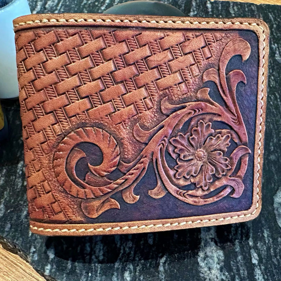 กระเป๋าสตางค์หนังแท้ลายสานแบบพับได้ ป้องกัน RFID กันน้ำ ฟังก์ชั่นหลากหลาย สไตล์วินเทจ ปี 2025 งานฝีมือแกะสลัก