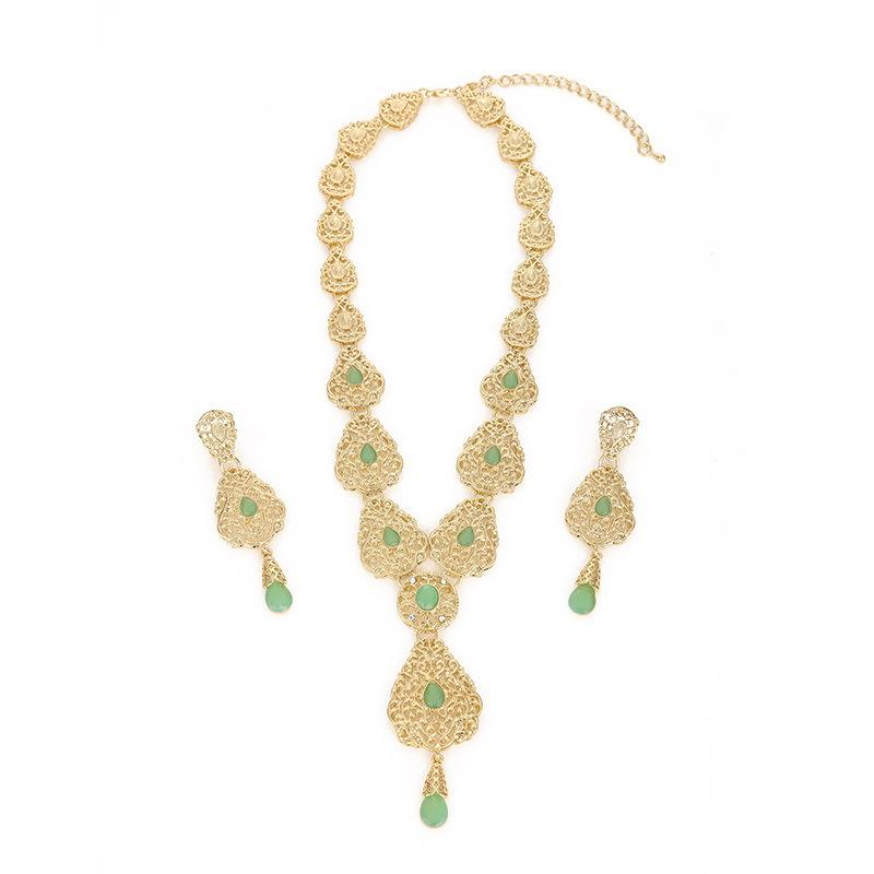 ชุดเครื่องประดับเจ้าสาวแบบอาหรับสำหรับผู้หญิง ประกอบด้วยสร้อยคอและต่างหูทรงหยดน้ำชุบทองสีเทอร์ควอยซ์สไตล์วินเทจปี 2025