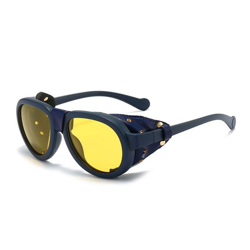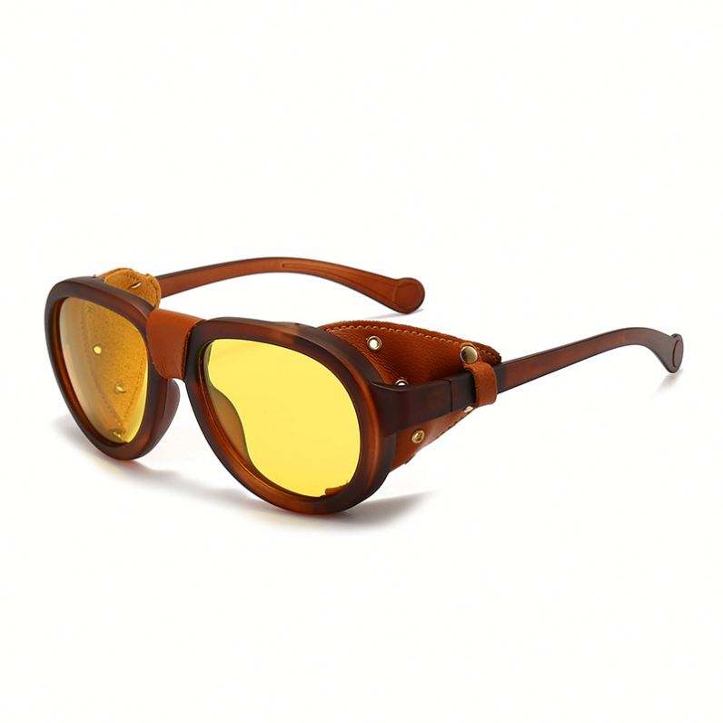 แว่นกันแดดทรงพังก์กรอบหนัง PU ประดับหมุด รุ่นวินเทจ ปี 2025 สำหรับผู้ชายและผู้หญิง ป้องกันรังสียูวี 400 โพลาไรซ์ มองเห็นได้ในเวลากลางคืน สไตล์สตีมพังก์