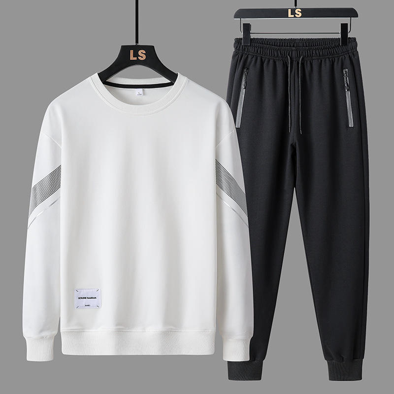 ชุดกีฬาผู้ชายสไตล์วินเทจสำหรับฤดูใบไม้ผลิฤดูใบไม้ร่วงและ2025ชุดวอร์มคอกลมกางเกงแฟชั่นสองชิ้น