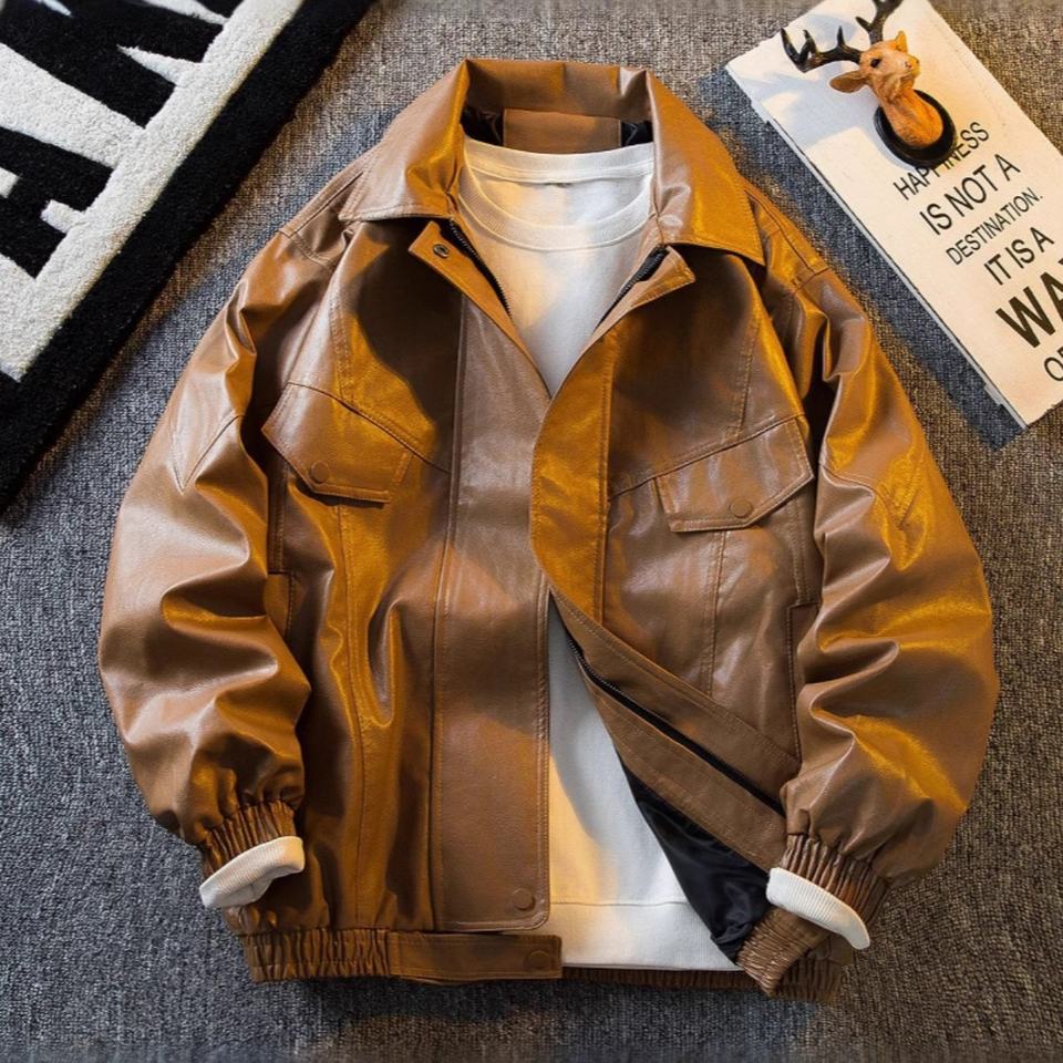 แจ็คเก็ตหนัง PU วินเทจ ปี 2025 สำหรับผู้ชาย แจ็คเก็ตแบรนด์เท่ห์ทันสมัย สไตล์ชุดทำงาน สำหรับฤดูใบไม้ผลิและฤดูใบไม้ร่วง | ปรับแต่งสีและสไตล์ได้