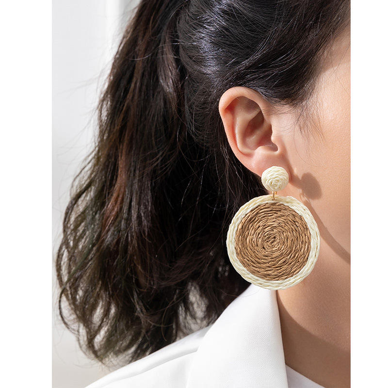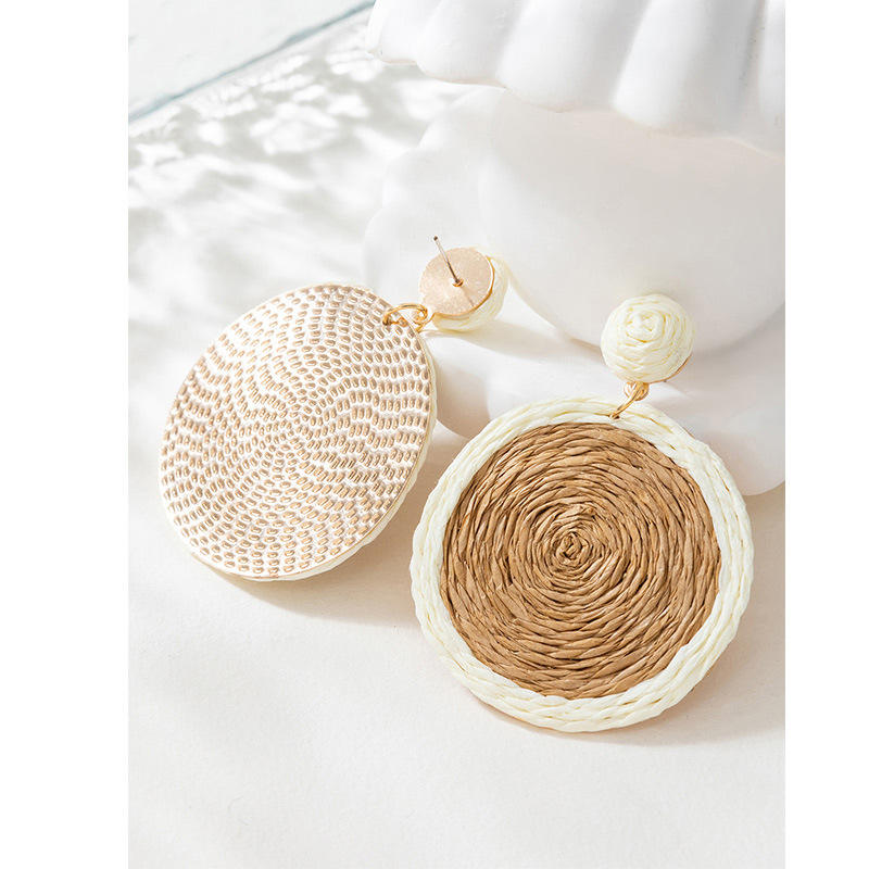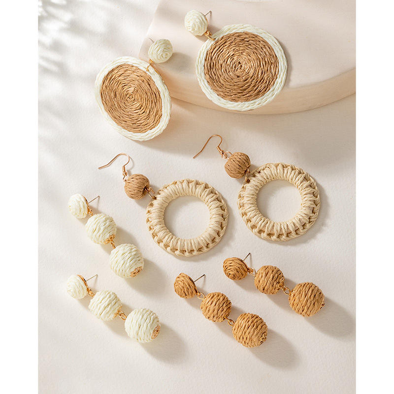 ต่างหูแบบห้อยทรงเรขาคณิตถักจากเส้นใยราฟเฟียสไตล์วินเทจ ปี 2025 ดีไซน์เก๋ไก๋แบบเรียบง่าย โดดเด่นด้วยดีไซน์ด้ายเก๋ไก๋ เครื่องประดับแฟชั่นสไตล์เรโทรสำหรับผู้หญิงสุดอินเทรนด์