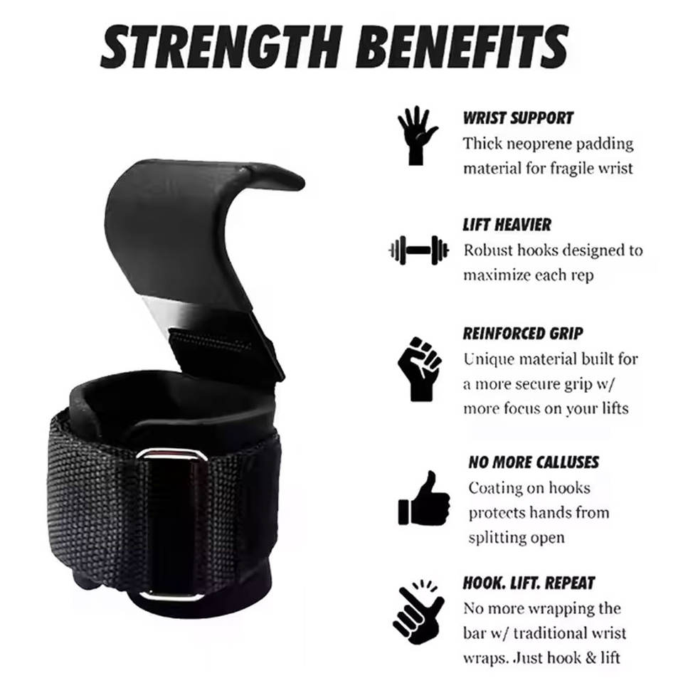 ตะขอยกน้ำหนัก2025พร้อมสายรัดข้อมืออุปกรณ์ยกน้ำหนักสำหรับออกกำลังกายในยิม