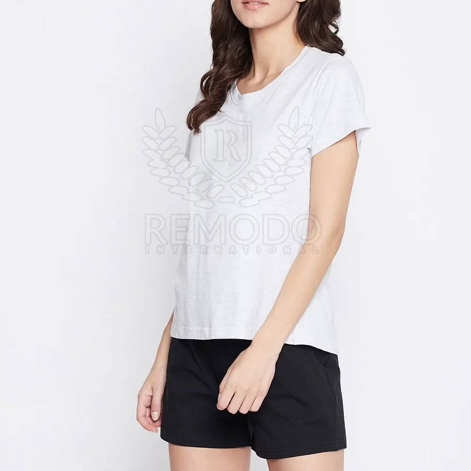 เซ็ตสั้นสำหรับผู้หญิงชุดเล่นกีฬาแขนสั้นผ้าคอตตอนพิมพ์ลายโลโก้2025 100%