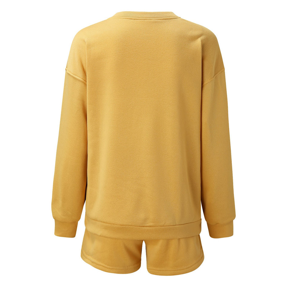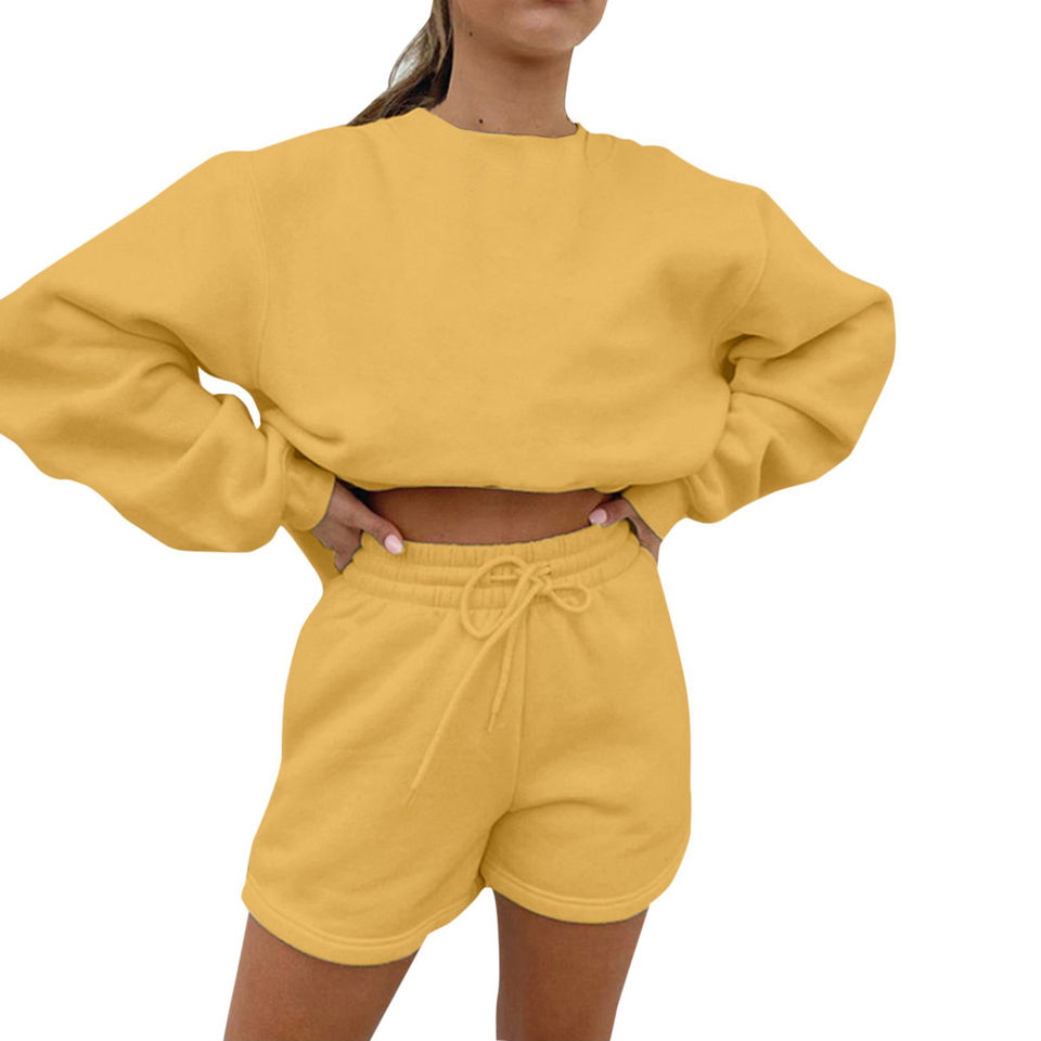 เซ็ตเสื้อสเวตเตอร์ผ้าฝ้ายและเสื้อสเวตเตอร์สั้นโอเวอร์ไซส์สำหรับผู้หญิงชุด2ชิ้นเสื้อแฟชั่นใหม่เสื้อท่อนบนกางเกงขาสั้นลำลองทรงโอเวอร์ไซส์2025