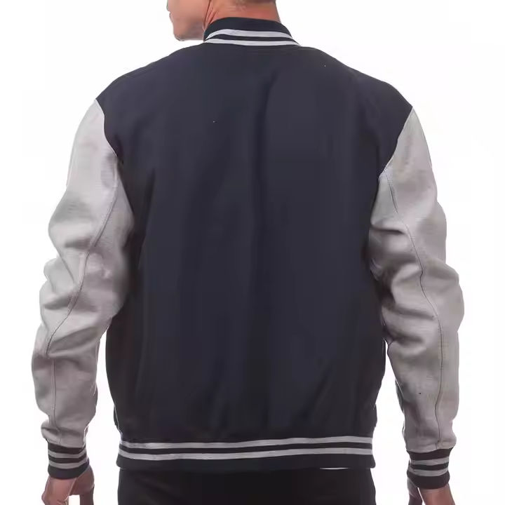 เสื้อแจ็กเก็ตผ้าซาตินคอปกแบบถักลายมหาวิทยาลัยเสื้อกั๊กเบสบอลขนสัตว์สำหรับฤดูหนาวสั่งได้2025