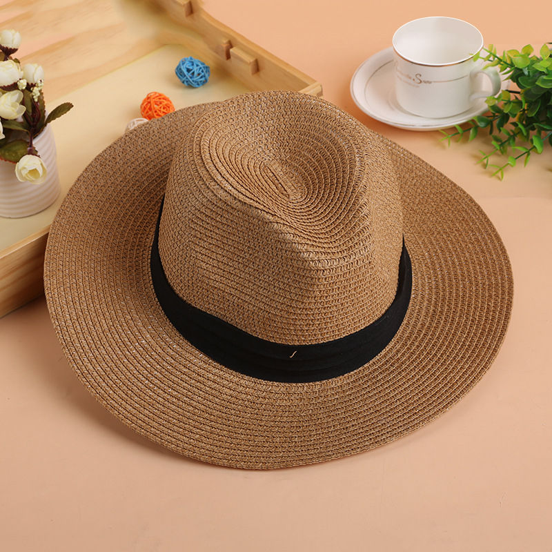 2025หมวกชายหาดแบบลำลองปีกกว้างลายทางออกแบบได้ตามต้องการหมวกฟางพับเก็บได้สำหรับชายทะเล