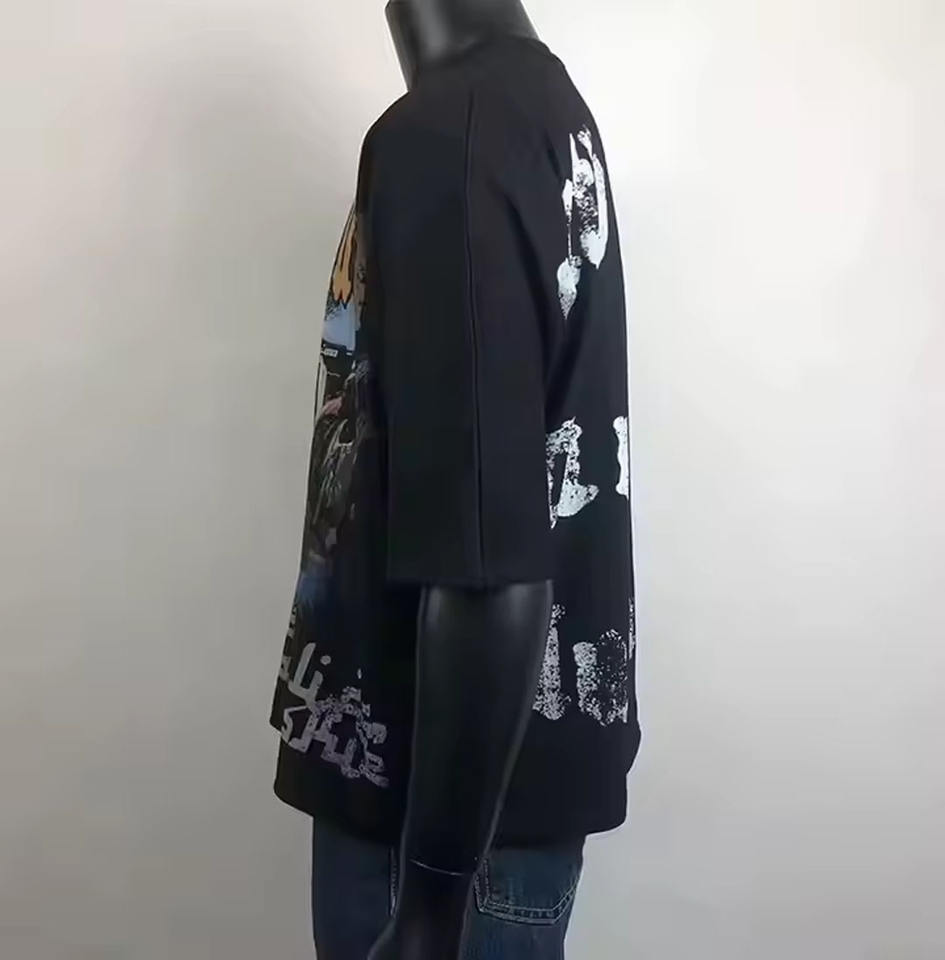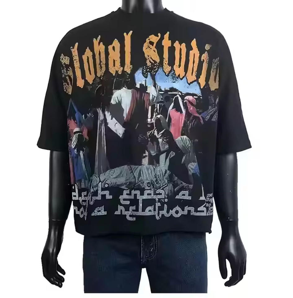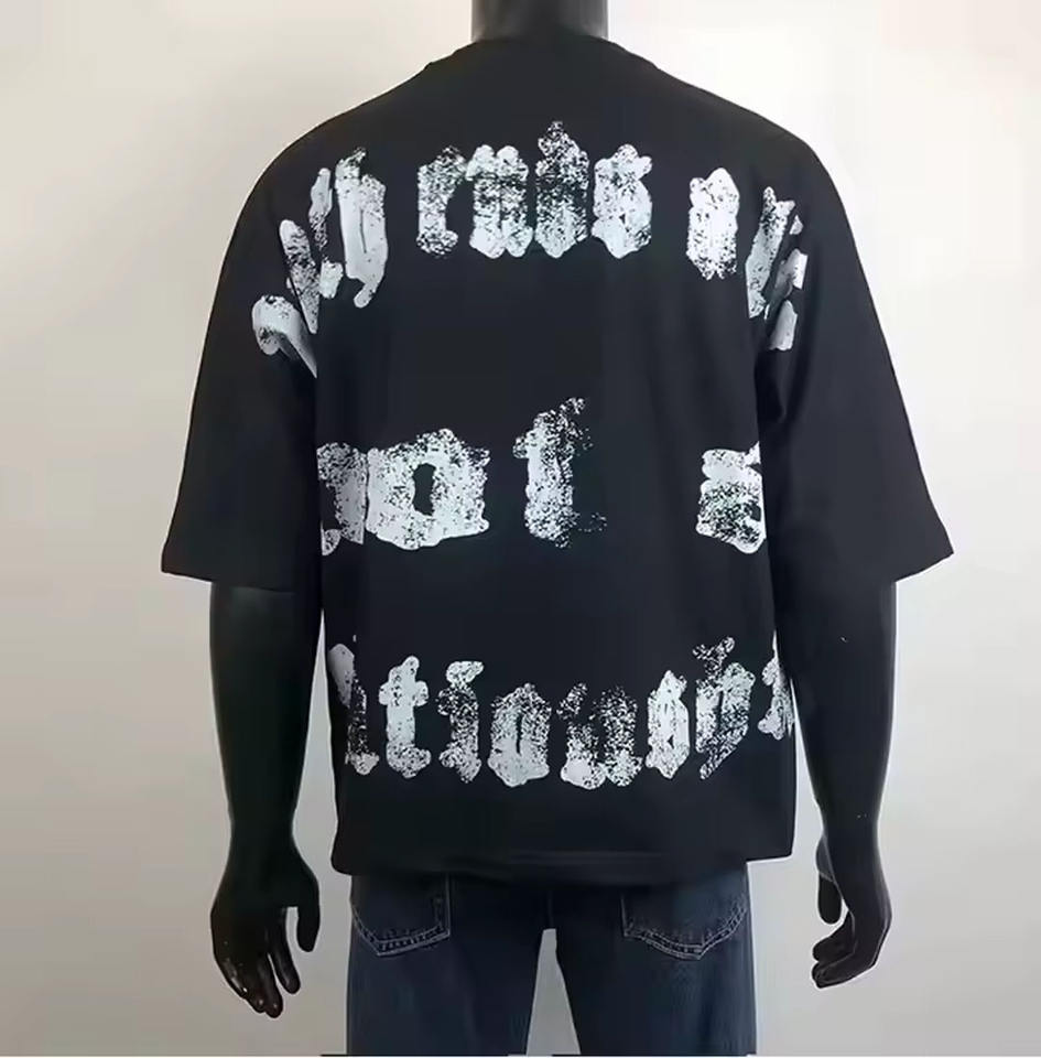 เสื้อยืดสีดำโอเวอร์ไซส์สำหรับผู้ชายเสื้อยืดผ้าฝ้าย100% น้ำหนักมากกำหนดโลโก้ได้เอง2025