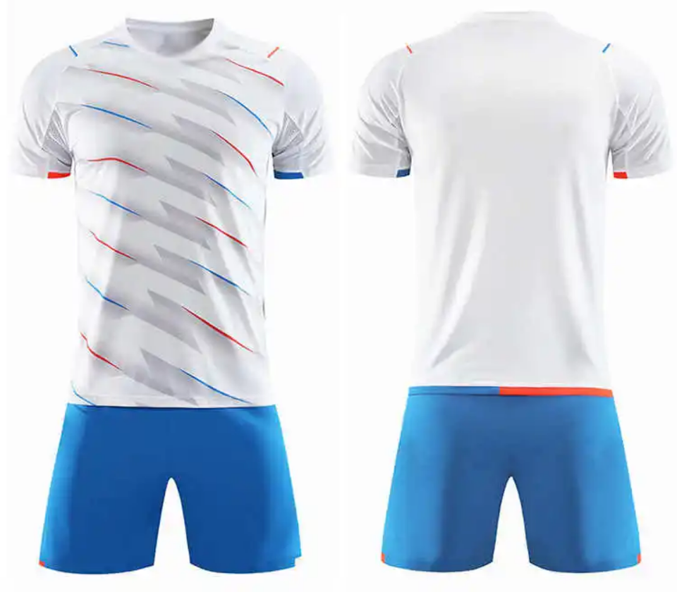 ชุดเสื้อฟุตบอลโพลีเอสเตอร์/คอตตอนคุณภาพสูง น้ำหนักเบา เป็นมิตรกับสิ่งแวดล้อม พิมพ์โลโก้ตามสั่ง ขายส่งปี 2025 ระบายอากาศได้ดี แห้งเร็ว