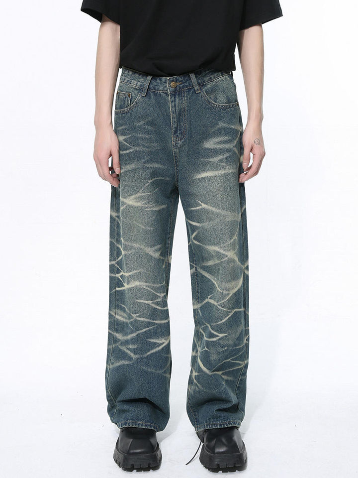 กางเกงยีนส์ขาตรงของผู้ชายวินเทจสีทึบแนวสตรีทแวร์แบบกำหนดเอง2025