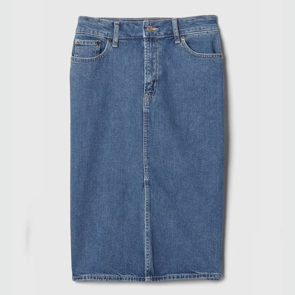กระโปรงผ้ายีนส์เอวสูงสำหรับผู้หญิงกระโปรงยาวผ่าข้างกระโปรงผ้าเดนิมผู้หญิงกระโปรงทรงตรง100% บริการ2025