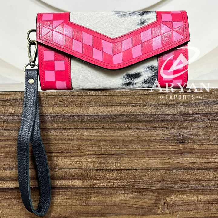 Product name:Hand Tooled Checkered Leather Wristlet Clutch