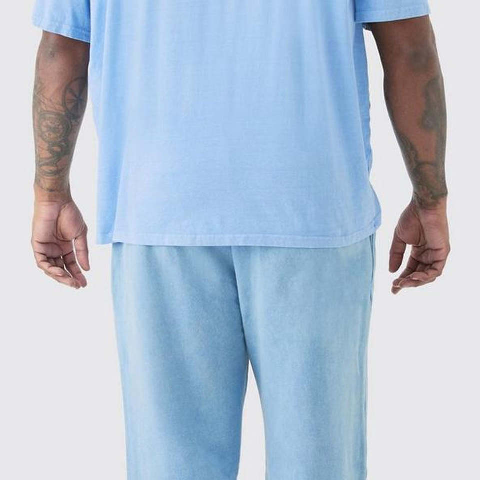 2025 Wholesale Light Blue Color Oversize Sweat Men's Pants Customize 100% Cotton Fabric Double Waist Flared Sweatpants For Men