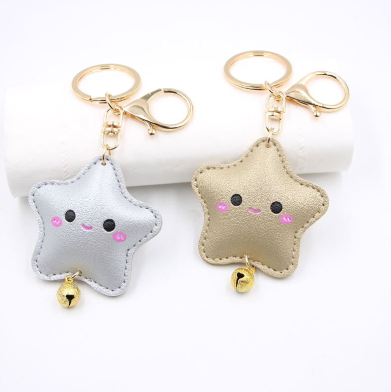 2025 Wholesale PU Leather Keychain with Embossed Star Shape Five-Star Bag Pendant Keychains