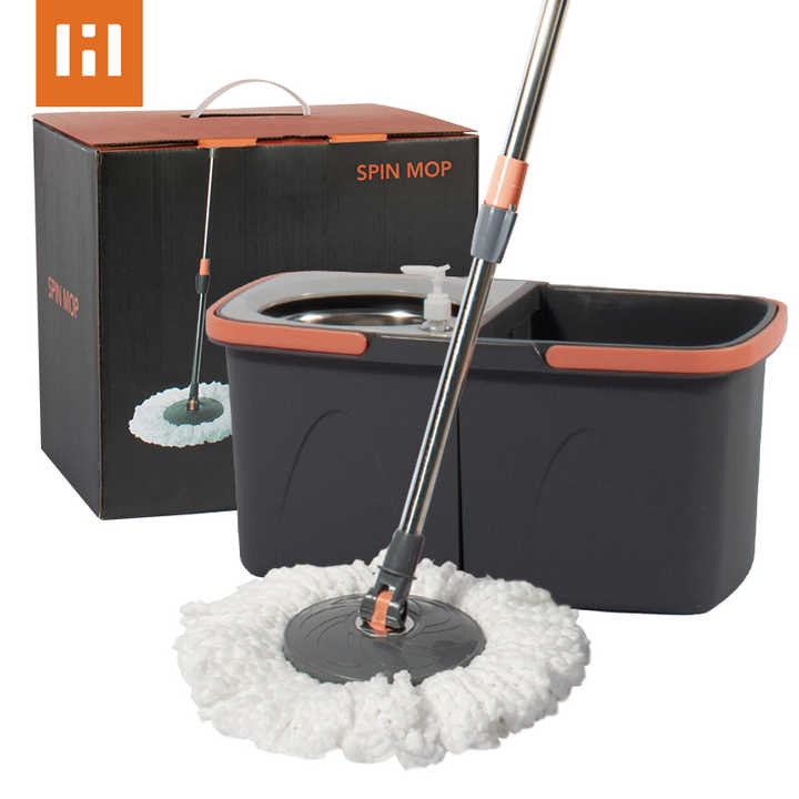 ชุดม็อบปั่นทรงถังผ้าไมโครไฟเบอร์2025ดีไซน์เกาหลี2ถังคู่รูปทรงหัวไม้ถูพื้น