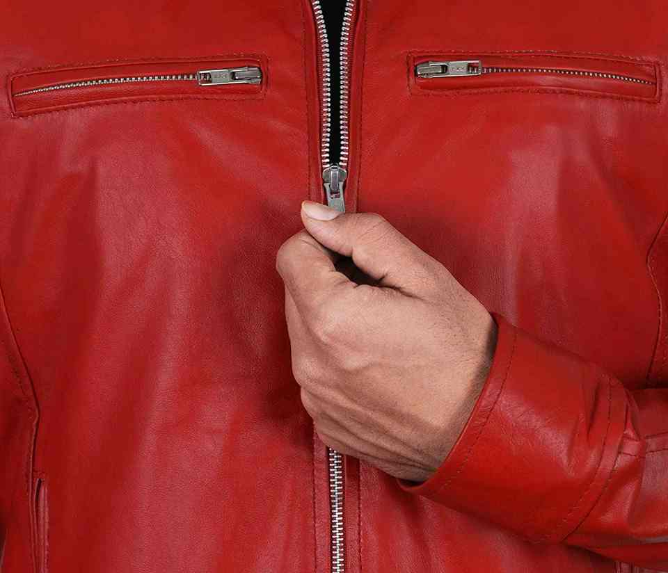 แจ็กเก็ตหนังแท้สำหรับผู้ชายสีแดง2025แจ็กเก็ตหนังแท้สำหรับผู้ชาย