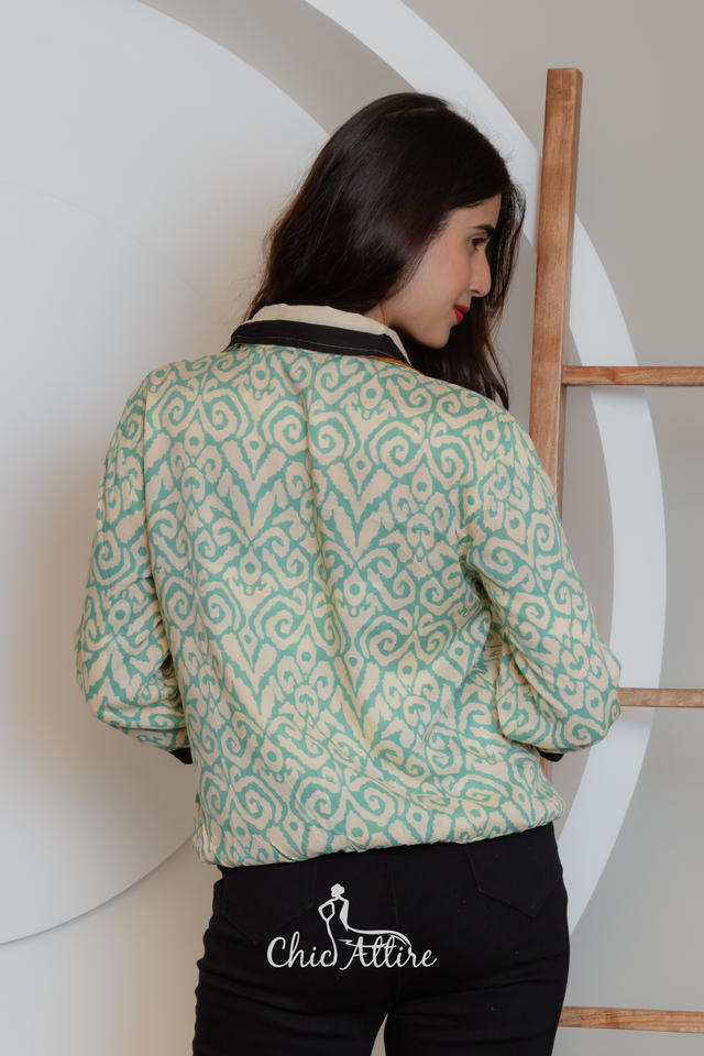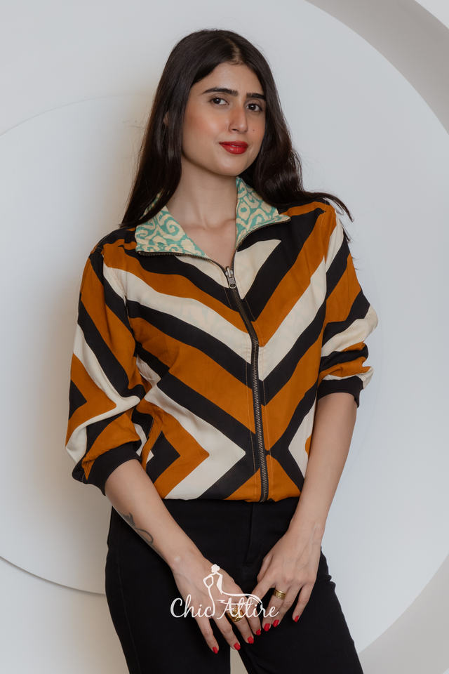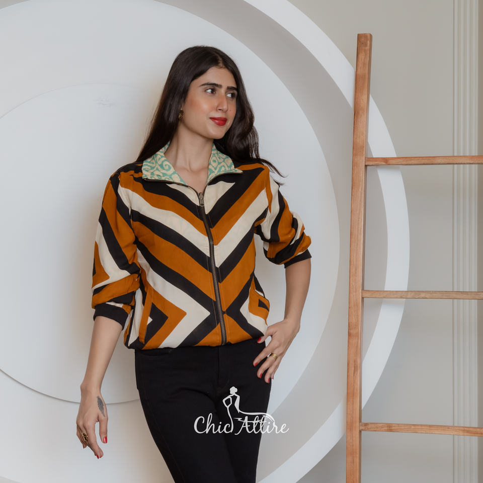 แจ็กเก็ตกลับ2025สำหรับผู้หญิงแจ็กเก็ตกลับได้ทันสมัยเสื้อนอกลำลองน้ำหนักเบาพิมพ์ลายเรขาคณิตสองสไตล์