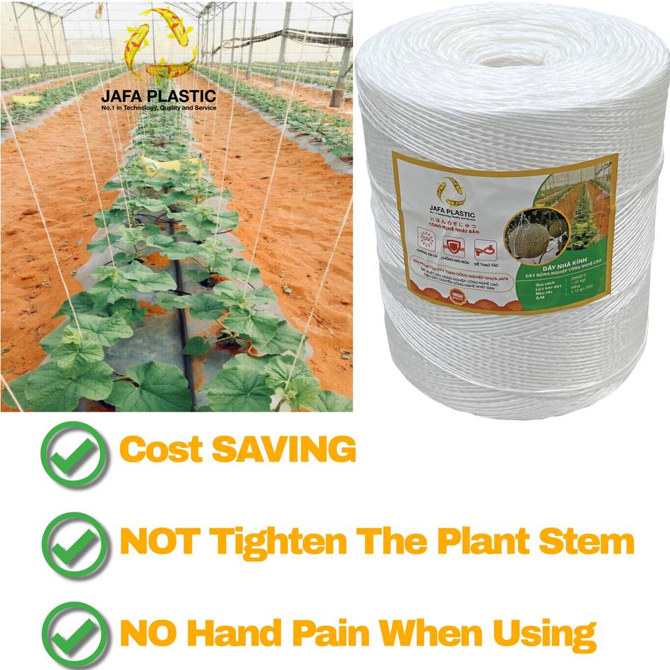 The twine is soft and smooth; easy to use when being withdrawn from inner core; especially it helps to avoid causing scratches to the plant, Low elongation and waterproof; anti-fungus, High breaking strength; using time more than 1.5 years, Application: To hang stems and fruits in greenhouses such as bell peppers; tomatoes; melons; and bitter gourds, UV resistant, Durable, Made in Vietnam, Waterproofข้อมูลจำเพาะ