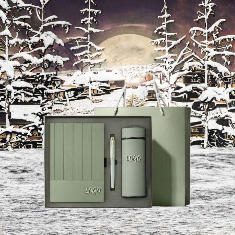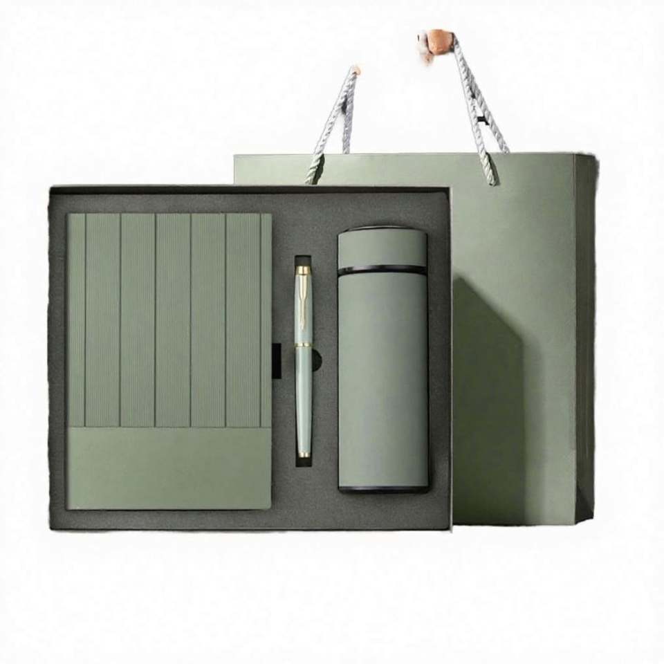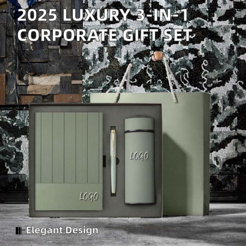 ชุดของขวัญสุดหรูสำหรับองค์กร ปี 2025 รุ่นใหม่ ดีไซน์ไม่ซ้ำใคร ทำจากสแตนเลส 3-in-1 ประกอบด้วยสมุดโน้ต ปากกา และกระติกน้ำร้อน เหมาะเป็นของขวัญวันพ่อ