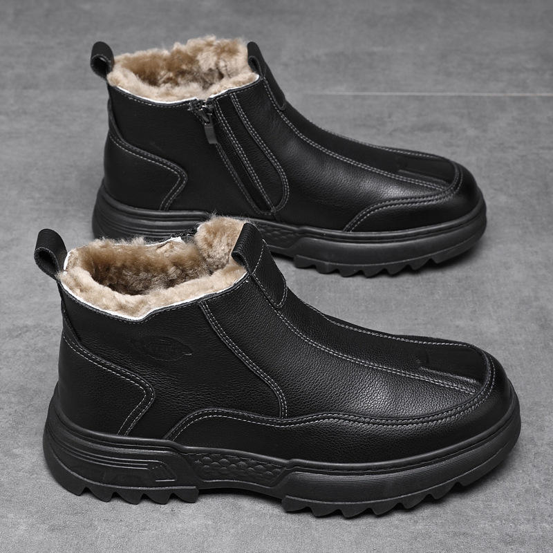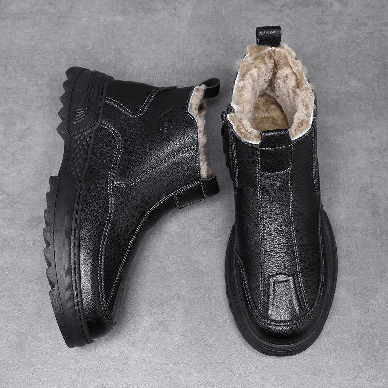 รองเท้าบูทหนังแท้บุขนแกะสำหรับฤดูหนาวปี 2025 รองเท้าลำลองกันลื่นแบบหุ้มข้อสูงสำหรับกิจกรรมกลางแจ้ง