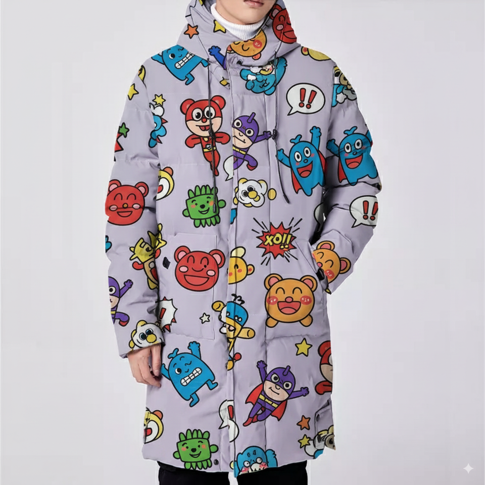 เสื้อโค้ทยาวพิมพ์ลายการ์ตูนของผู้ชาย